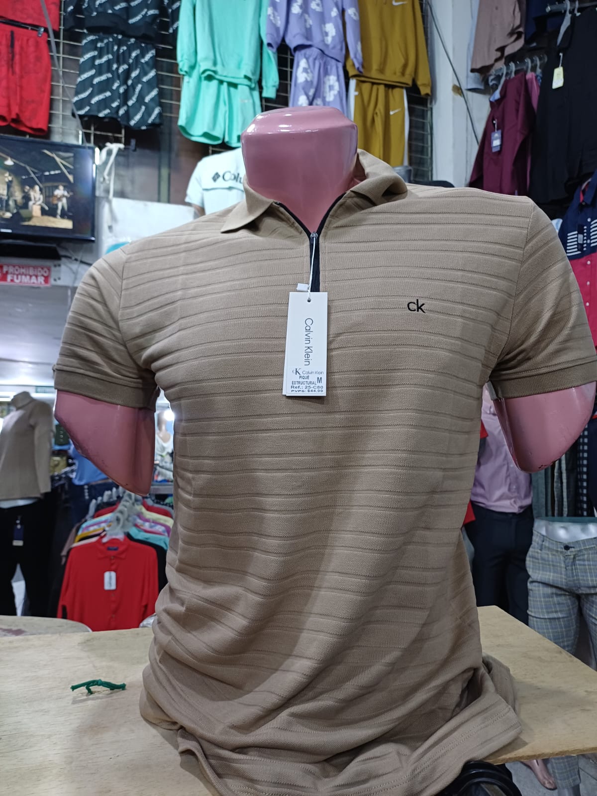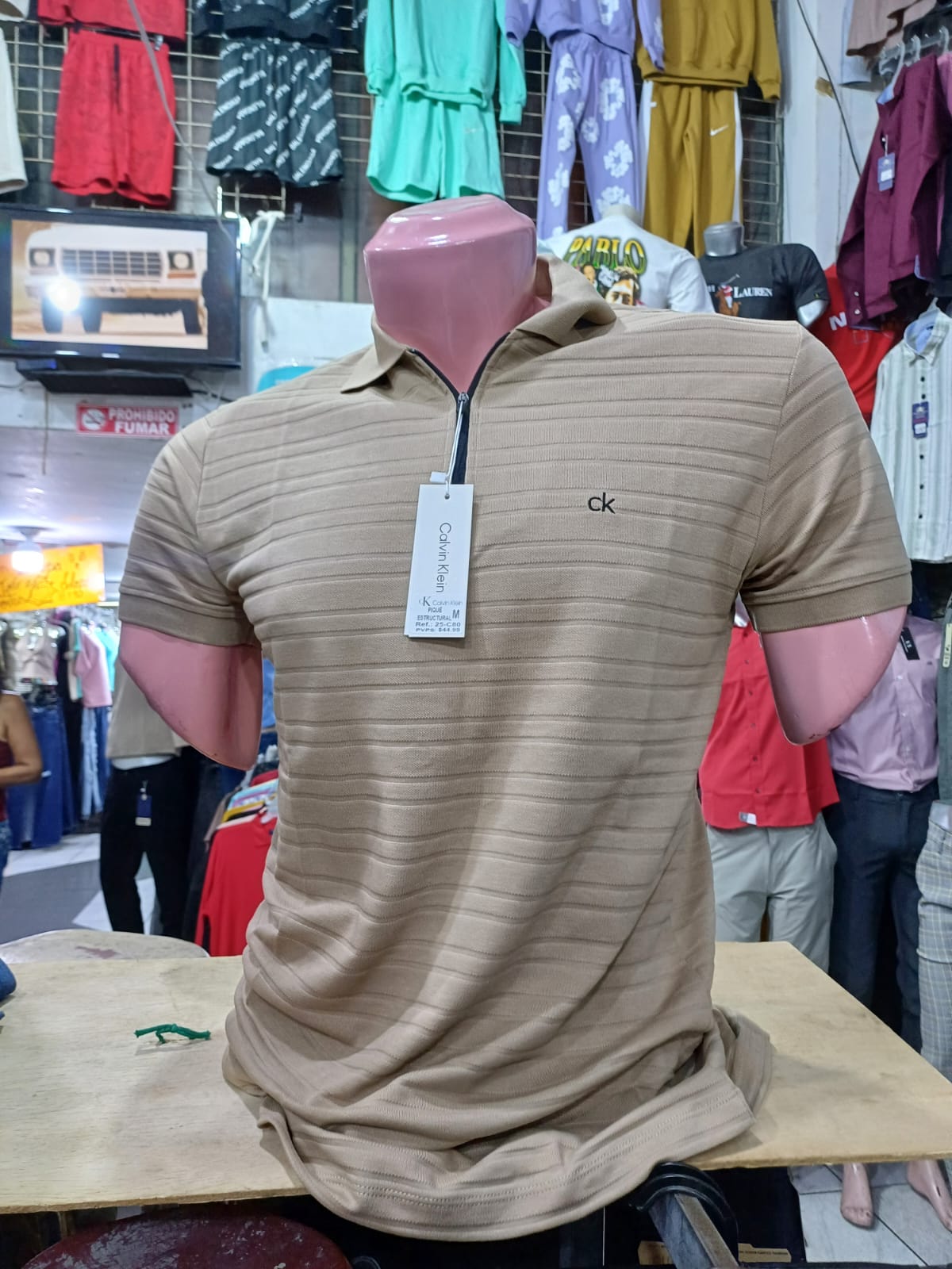 Camiseta con cuello Calvin Klein (con textura y cierre)