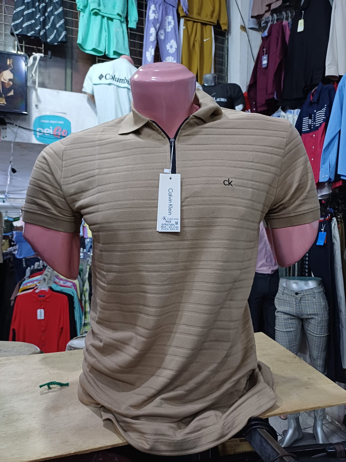 La Camiseta con cuello Calvin Klein destaca por su diseño con textura única y un elegante cierre, además de un bordado distintivo que le da un toque de sofisticación. Ideal para un look casual y moderno, esta camiseta combina comodidad y estilo de forma impecable.